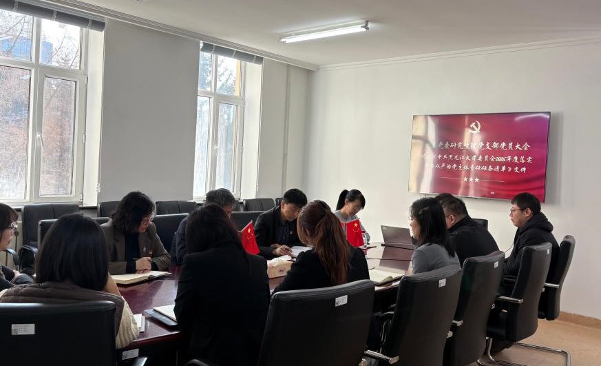 党支部书记王金良传达了校党委书记迟宝旭的讲话精神、校党委副书记李君明关于贯彻落实会议精神的工作要求,带领与会人员认真学习《中共黑龙江大学委员会2026年度落实全面从严治党主体责任任务清单》,他强调师生党员要持续提高政治觉悟,深刻理解全面从严治党的重要性,认真贯彻落实学校党委各项工作安排。