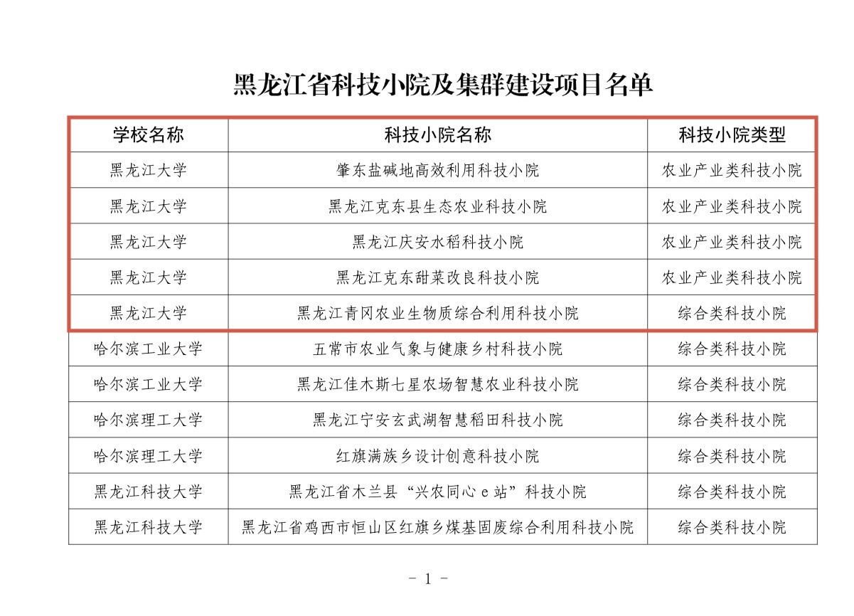 近期,黑龙江省教育厅公布《关于备案省级科技小院及集群建设项目的通知》,我校肇东盐碱地高效利用科技小院、黑龙江克东县生态农业科技小院、黑龙江庆安水稻科技小院、黑龙江克东甜菜改良科技小院、黑龙江青冈农业生物质综合利用科技小院成功备案为省级科技小院,同时,“黑龙江虎林寒地龙药科技小院集群”入选省级科技小院集群建设项目。